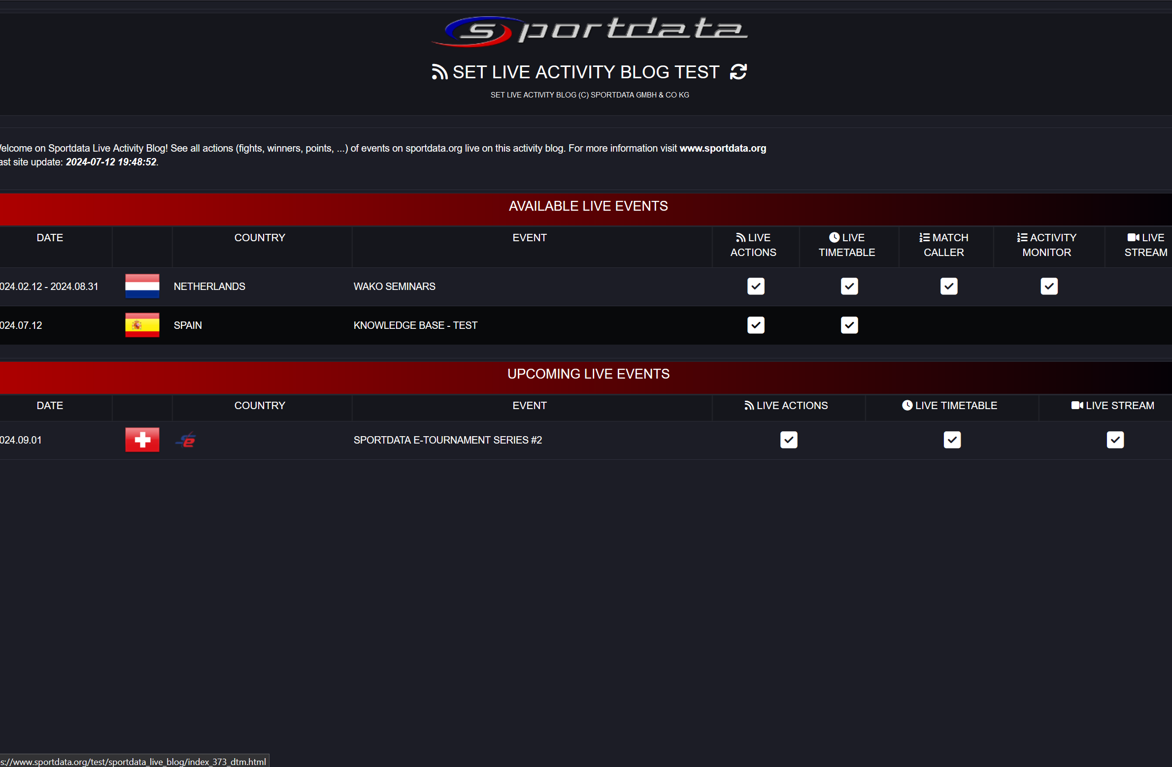 On the online event site, click on "Live Blog" to view all online live monitors.