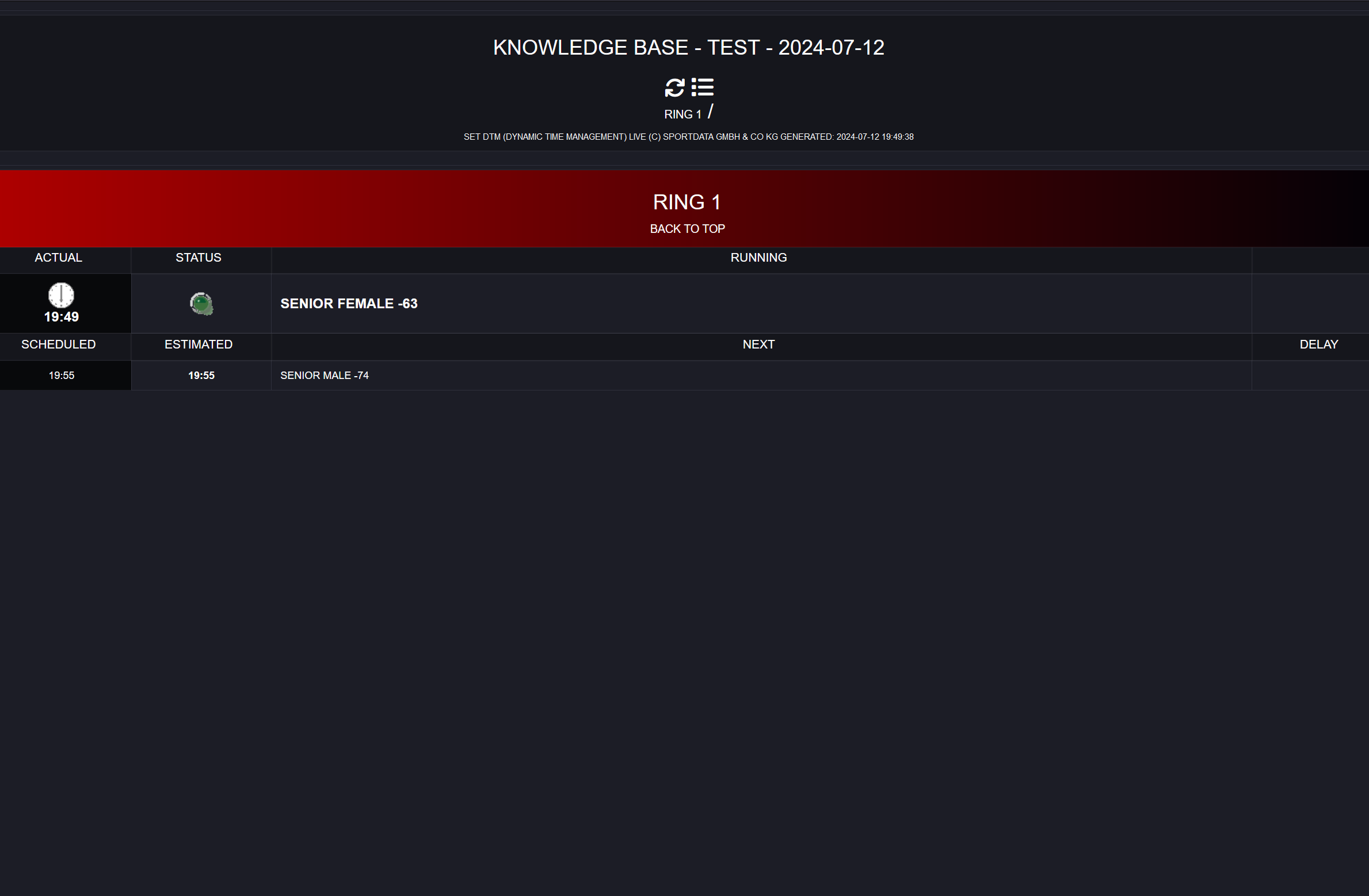 DTM Live Example: Displays the dynamic timetable with real-time updates, showing scheduled times, estimated times, delays, and ahead times for each area.