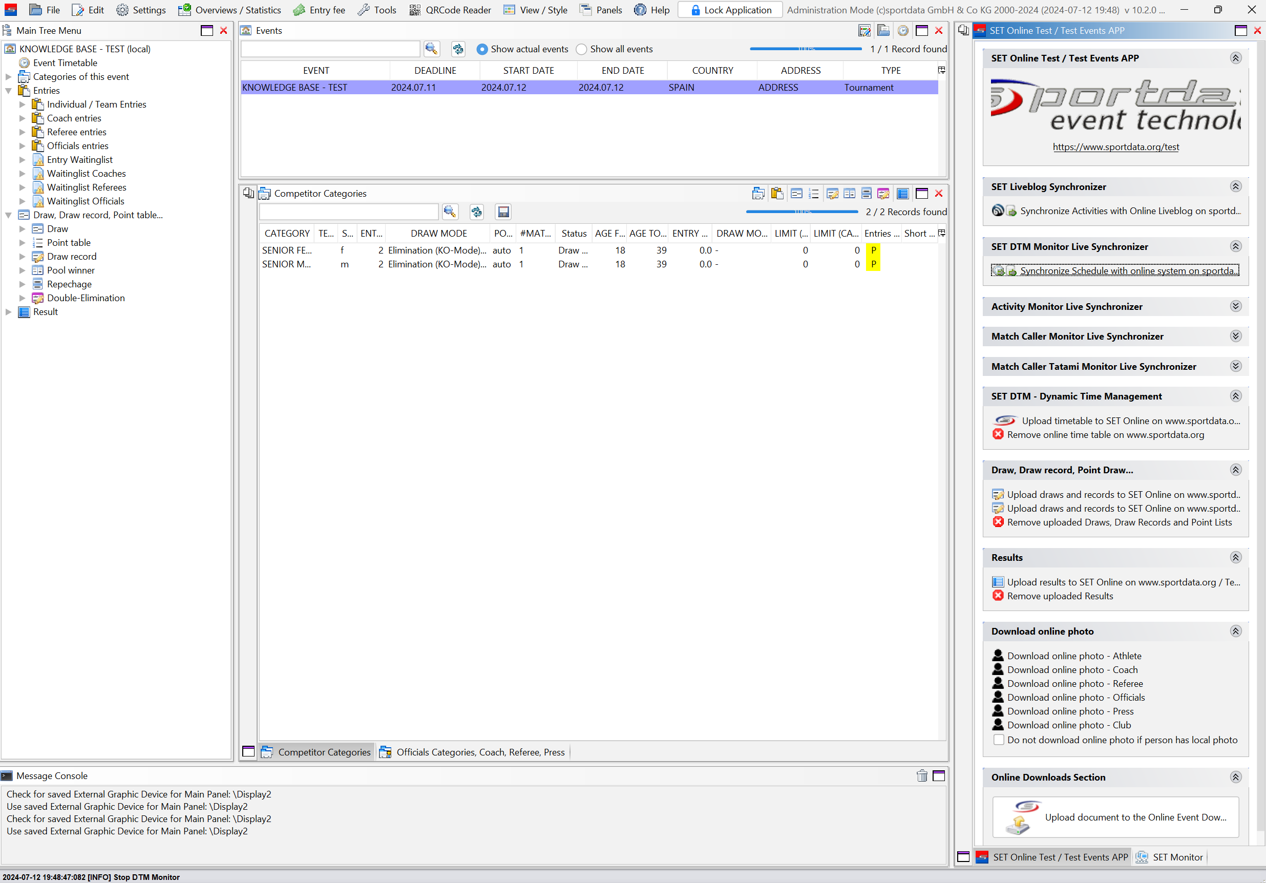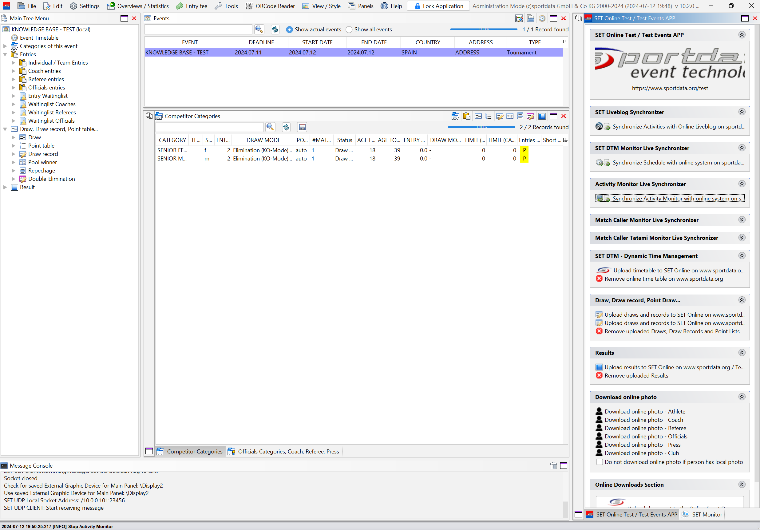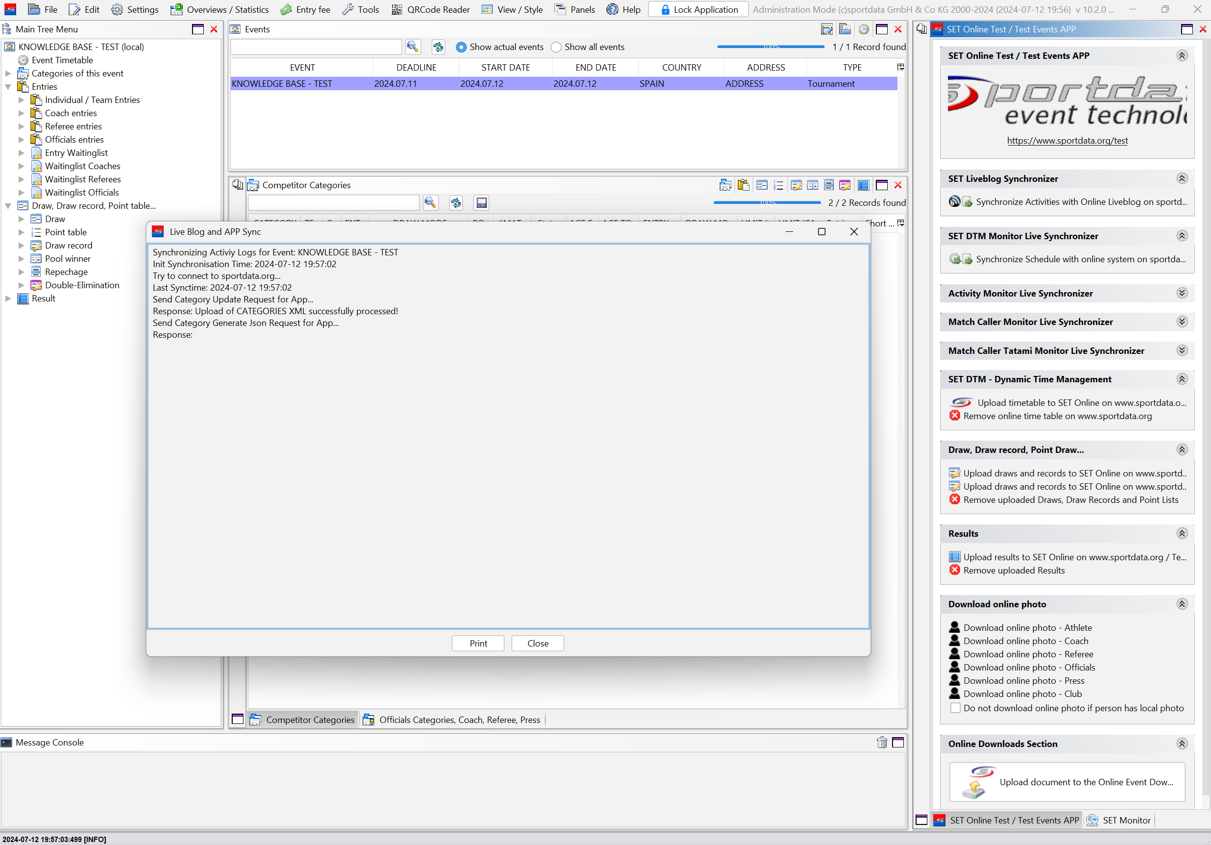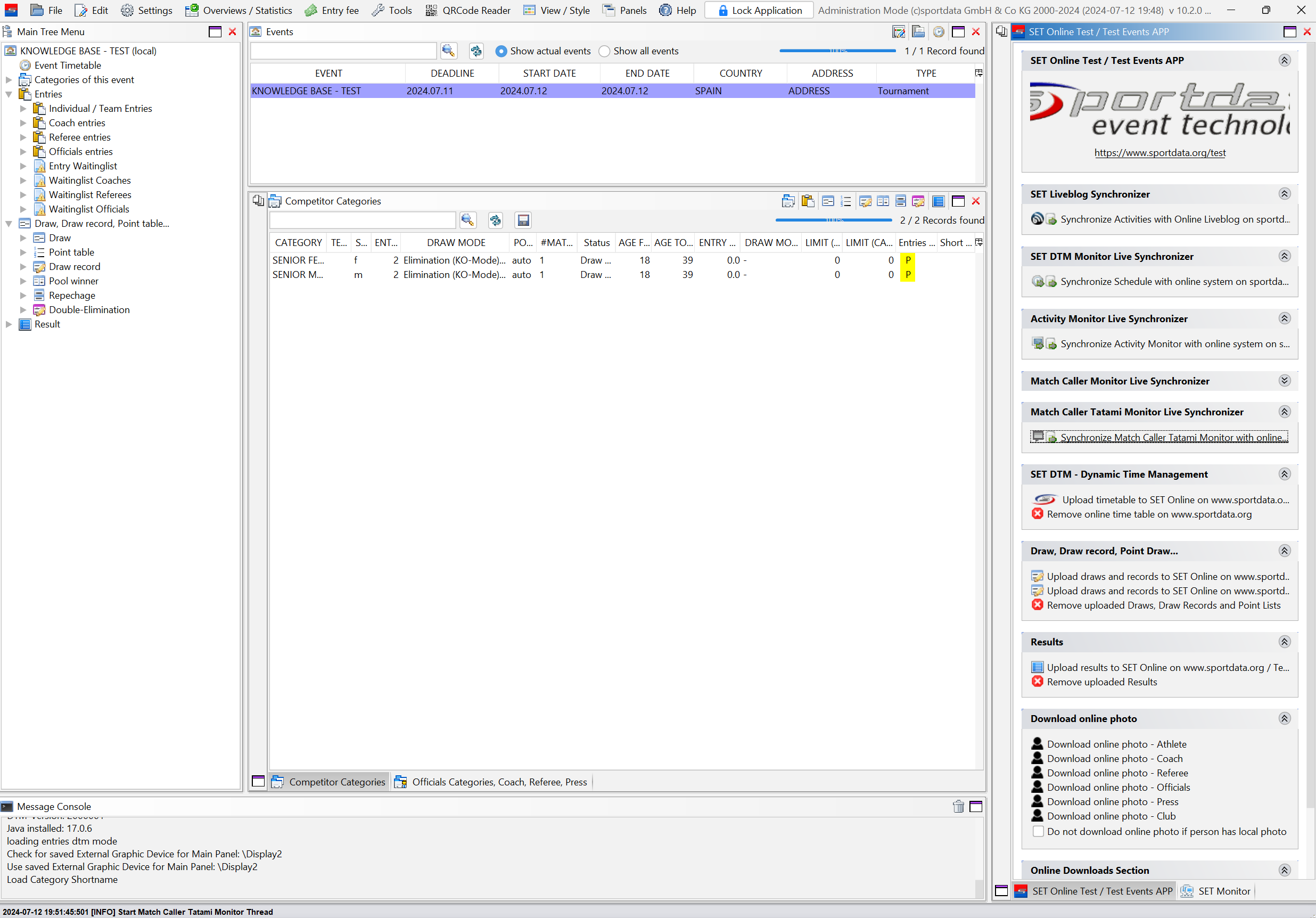 In the "SET Online" panel, click on "Synchronize Match Caller Tatami Monitor with Online System".