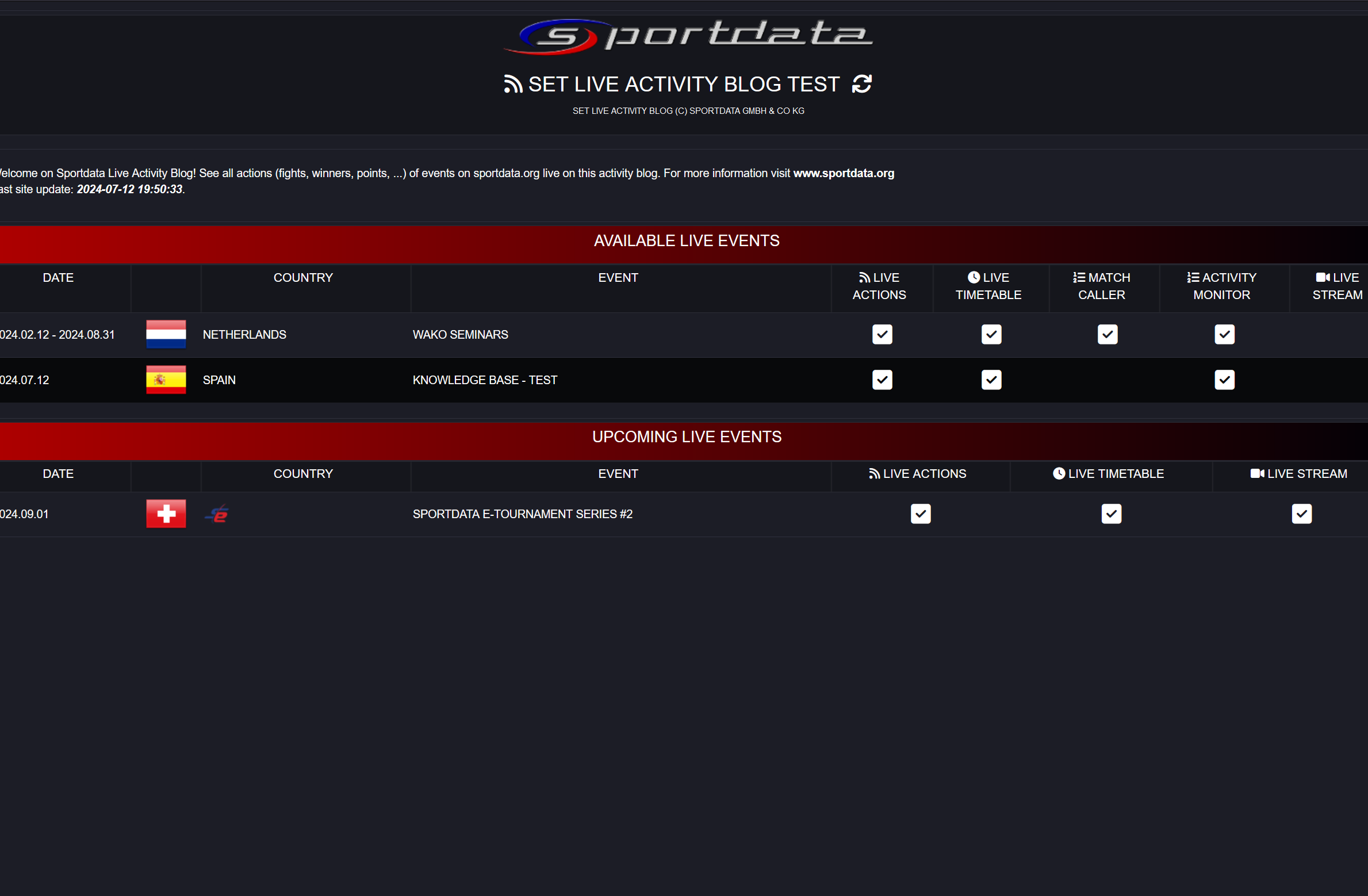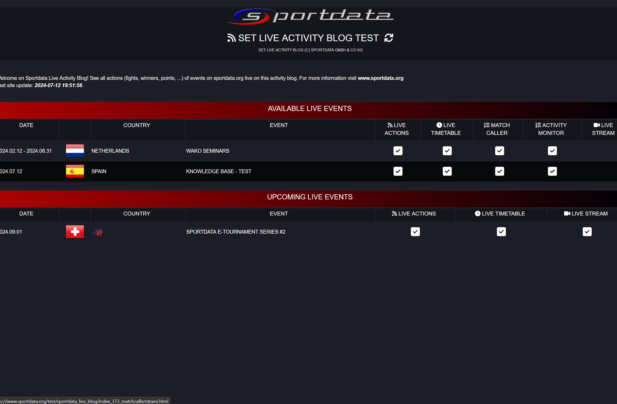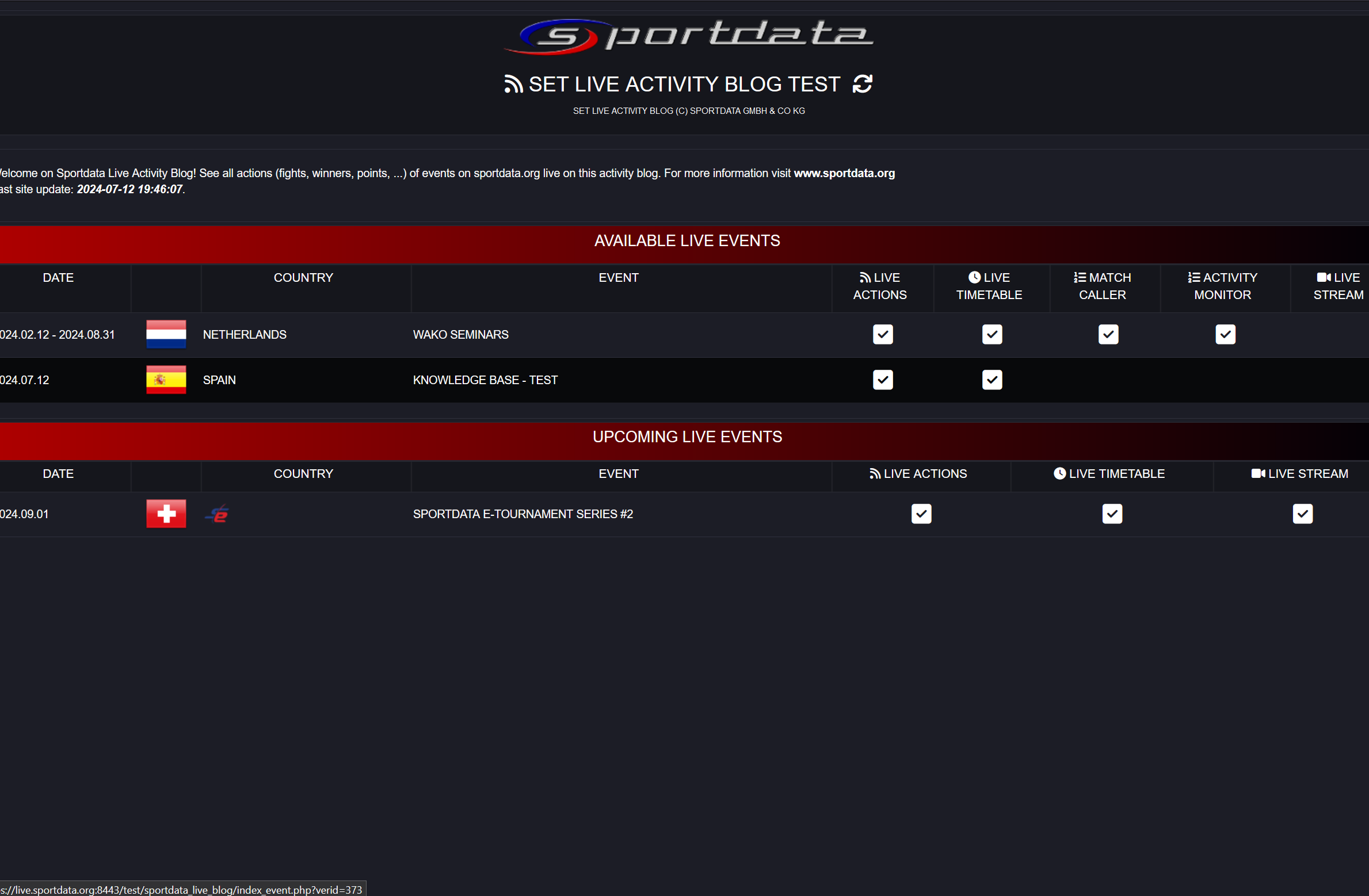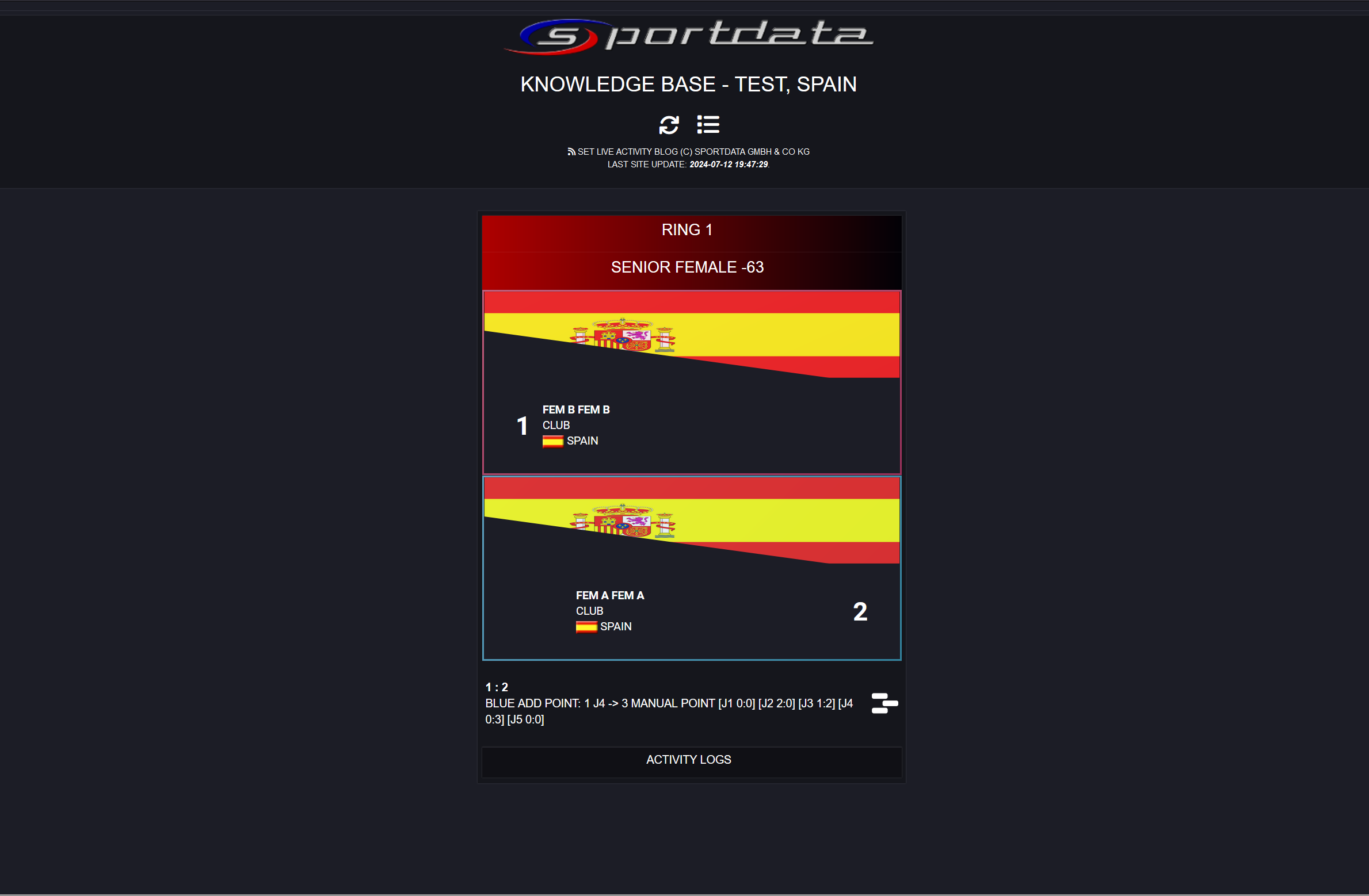Activity Monitor Live Example: Displays real-time updates of ongoing matches, including live scores, match statuses, and time remaining. It provides dynamic tracking for each area, ensuring accurate and up-to-date information.
