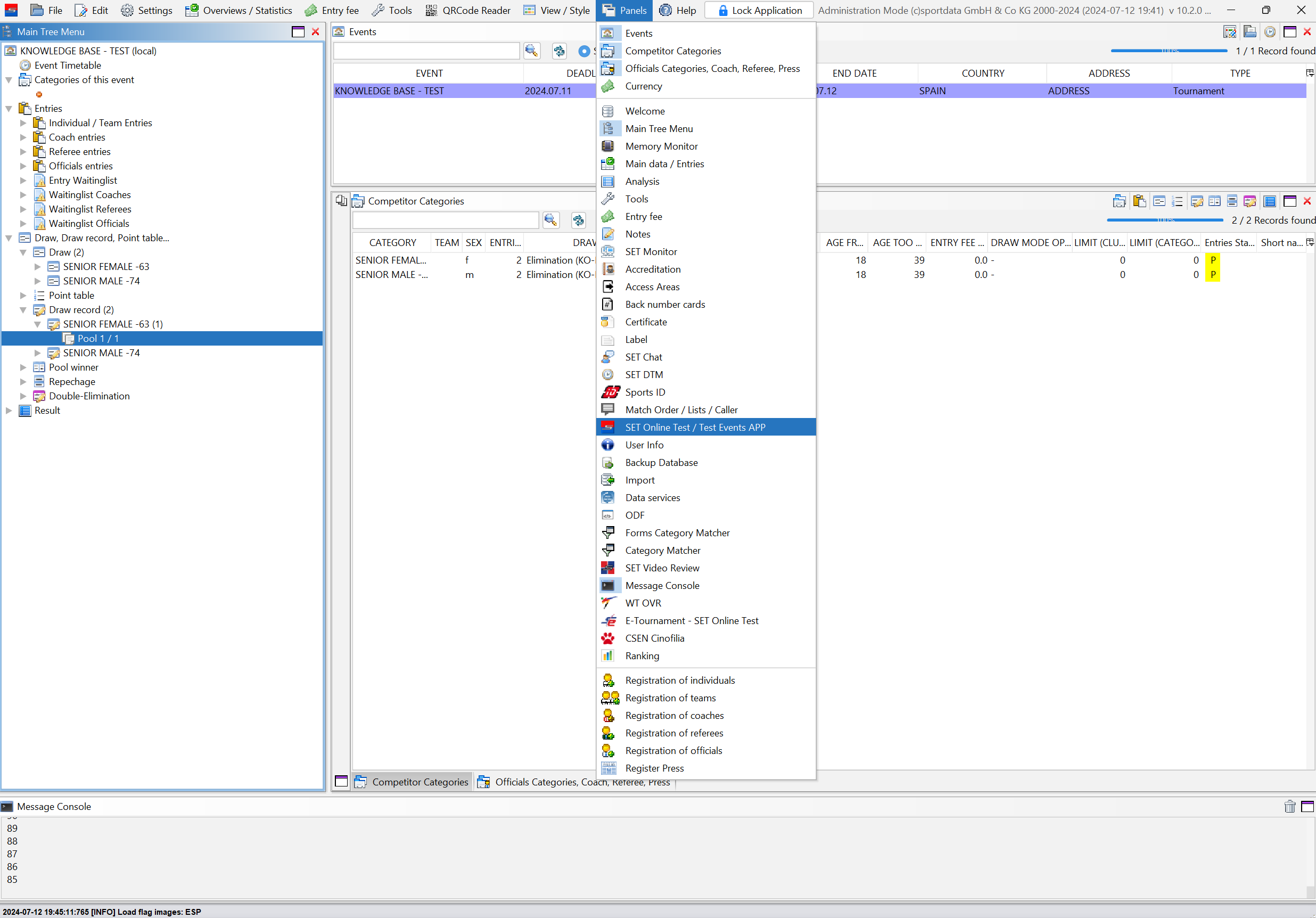 Click on "Panels" and then on "SET Online".